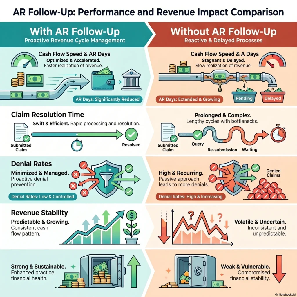 When your income is steady, your financial stability improves a lot. Practices that focus on AR follow-up are better able to pay bills and plan ahead. Good follow-up takes steady effort and a clear process.